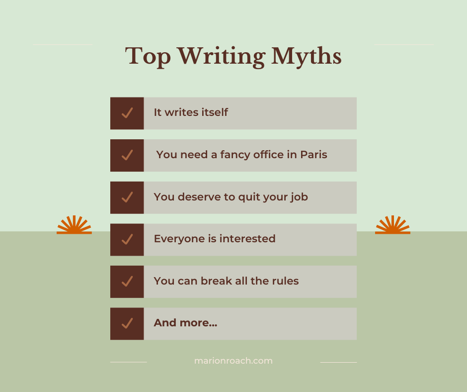MY FATHER WAS A sportswriter who agonized over every line he typed. He met my mother, who was also a journalist, because he was the slowest writer in the press box and was alone there when she wandered into that designated space at a New York racetrack. Their friends were writers, as is my sister, my husband and my best friend. I chose to go into the business, then wrote and published four books. And now, as a memoir teacher, memoir coach and memoir editor, I work with writers worldwide. What have I got to show for all this time with writers? This and that, as well as a tidy list of the top myths about writing. Here they are.