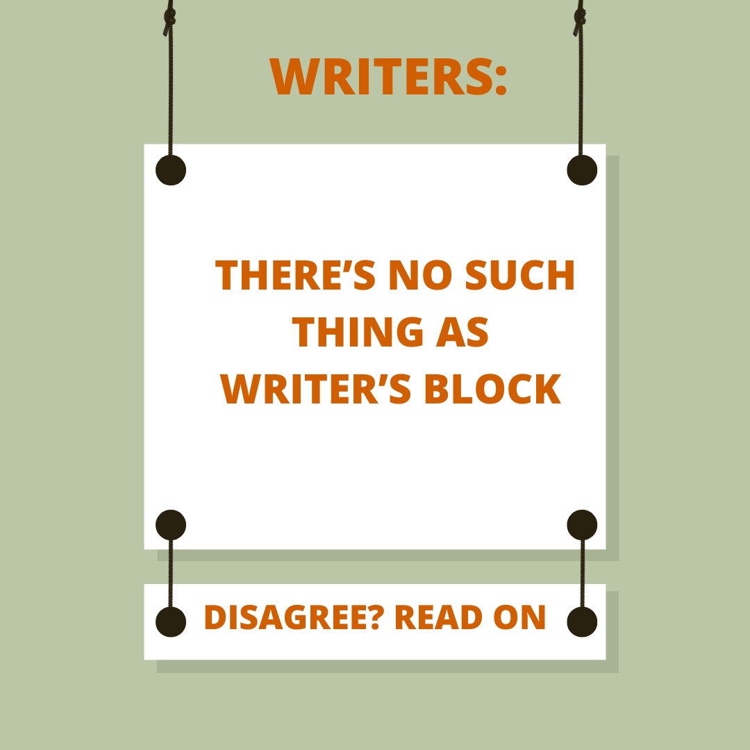 Now, repeat after me: There is no such thing as writer’s block. Okay. Good. We are ready to move on.